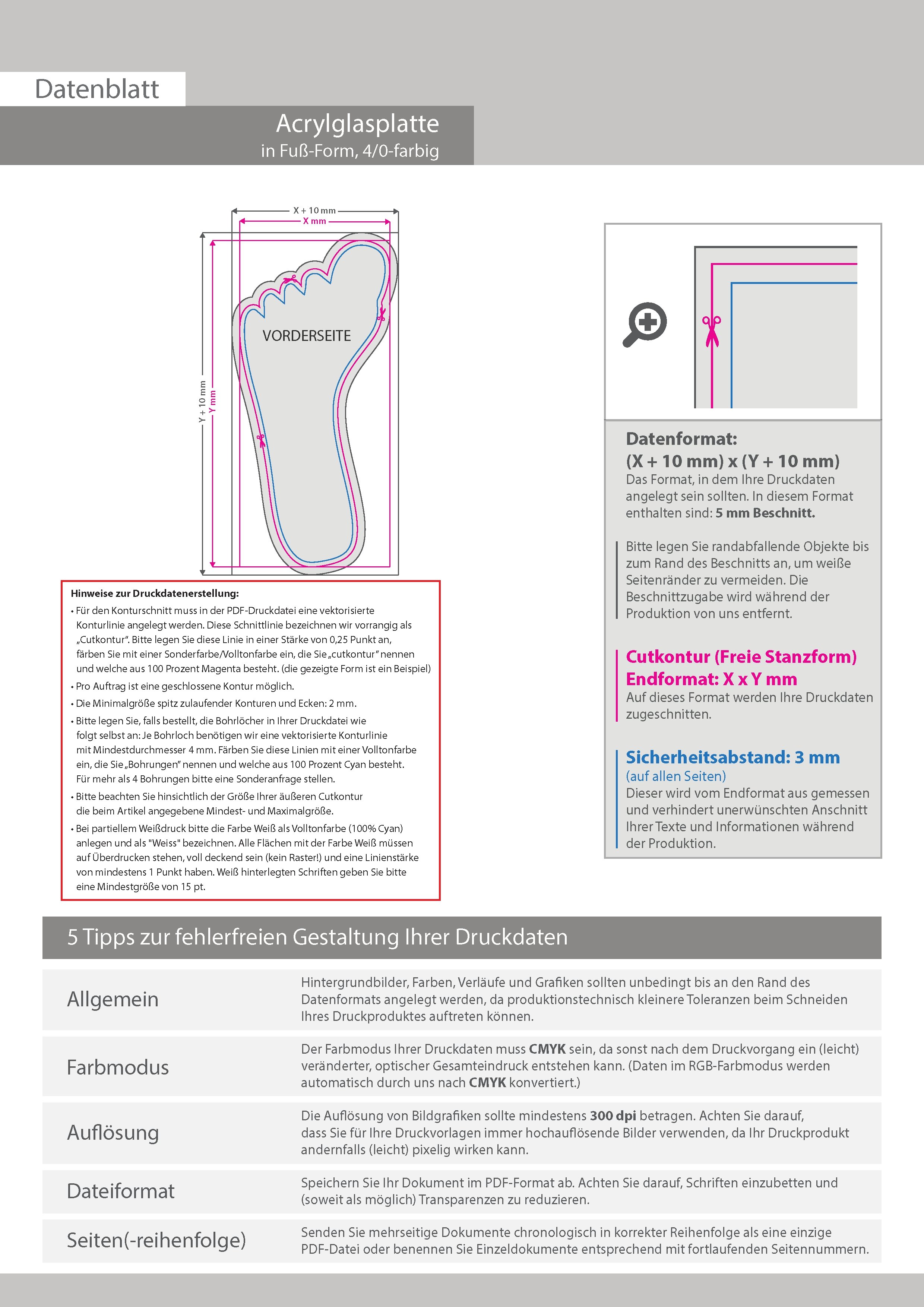 Acrylplatte mit Echtglasbeschichtung in Fußabdruck-Form konturgefräst