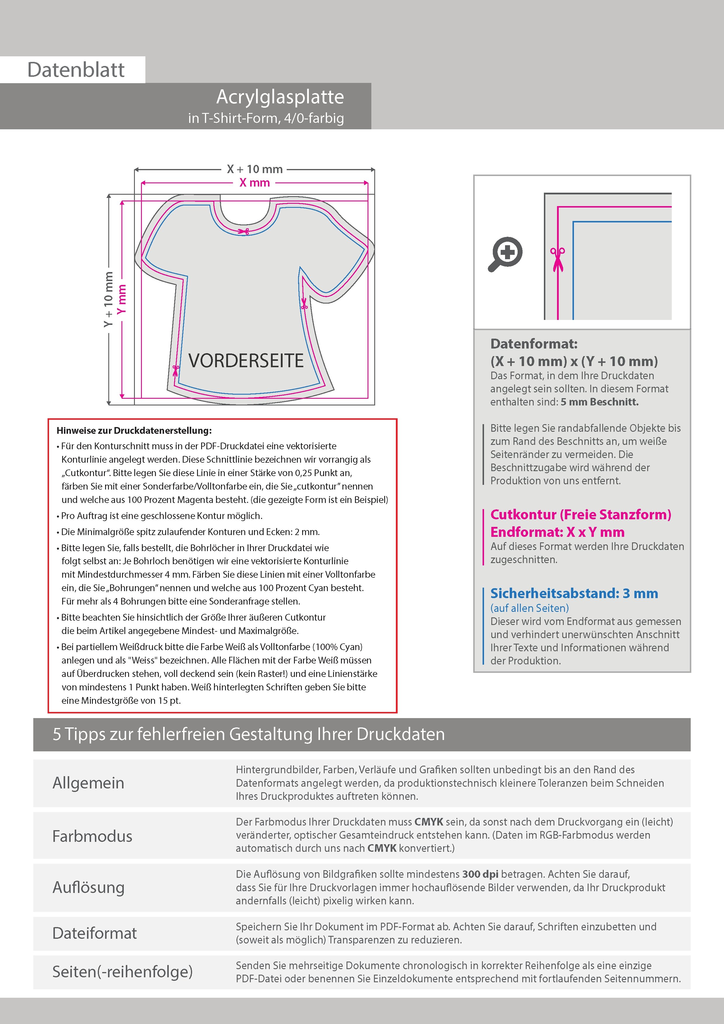 Acrylplatte mit Echtglasbeschichtung in Shirt-Form konturgefräst