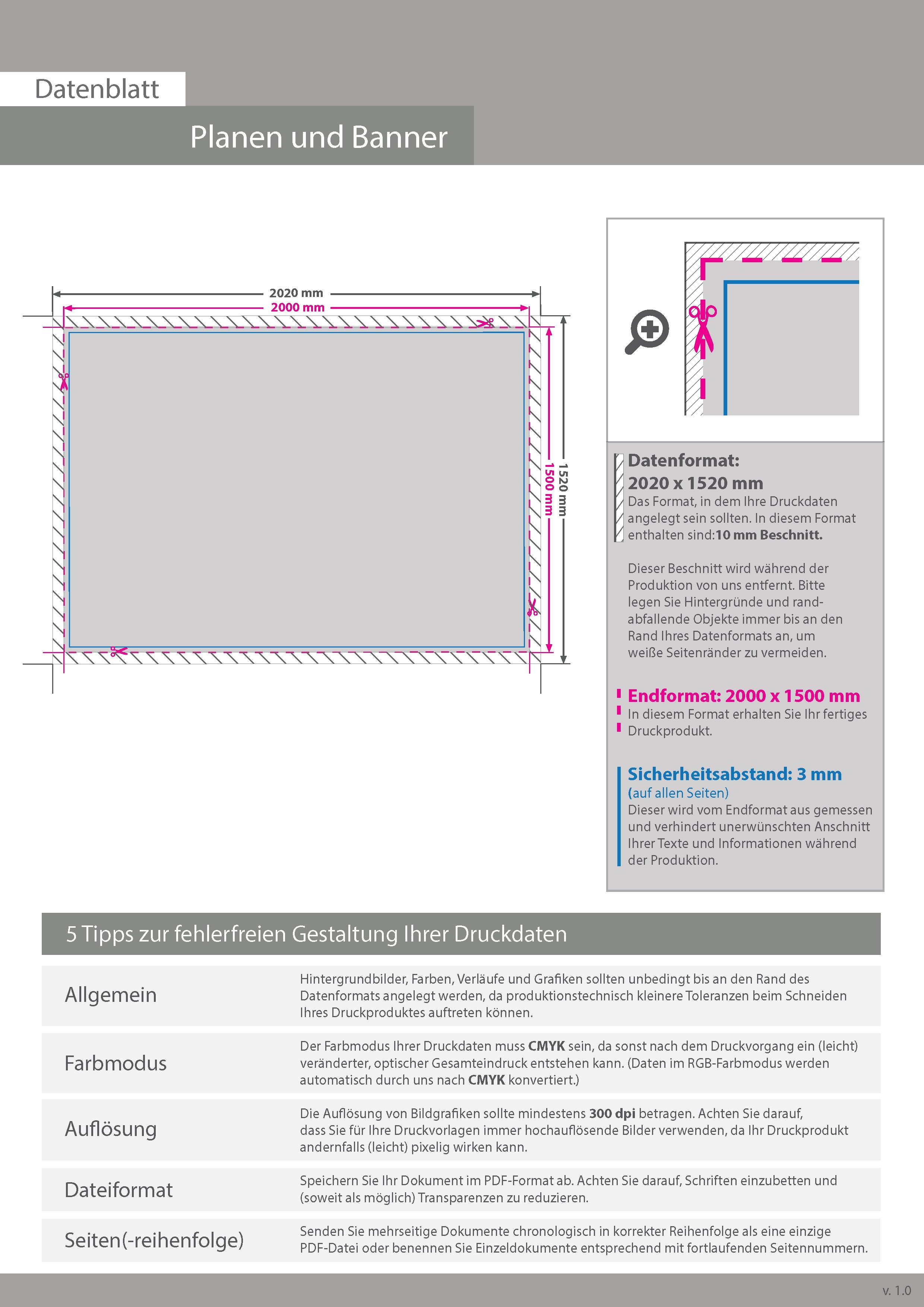 Hochwertige Mesh-Plane 200 x 150 cm, 4/0-farbig bedruckt, plano