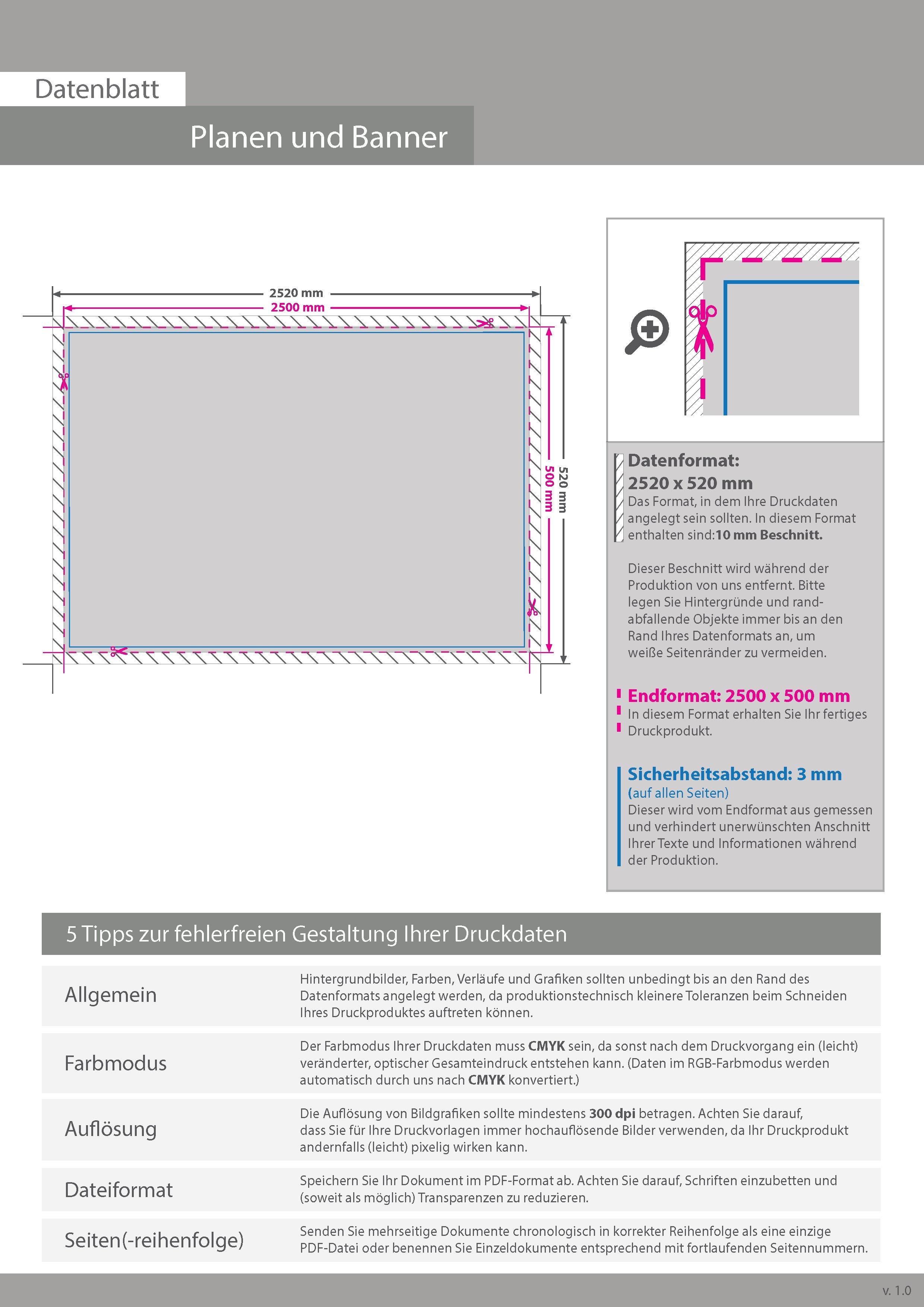 Hochwertige Mesh-Plane 250 x 50 cm, 4/0-farbig bedruckt, plano