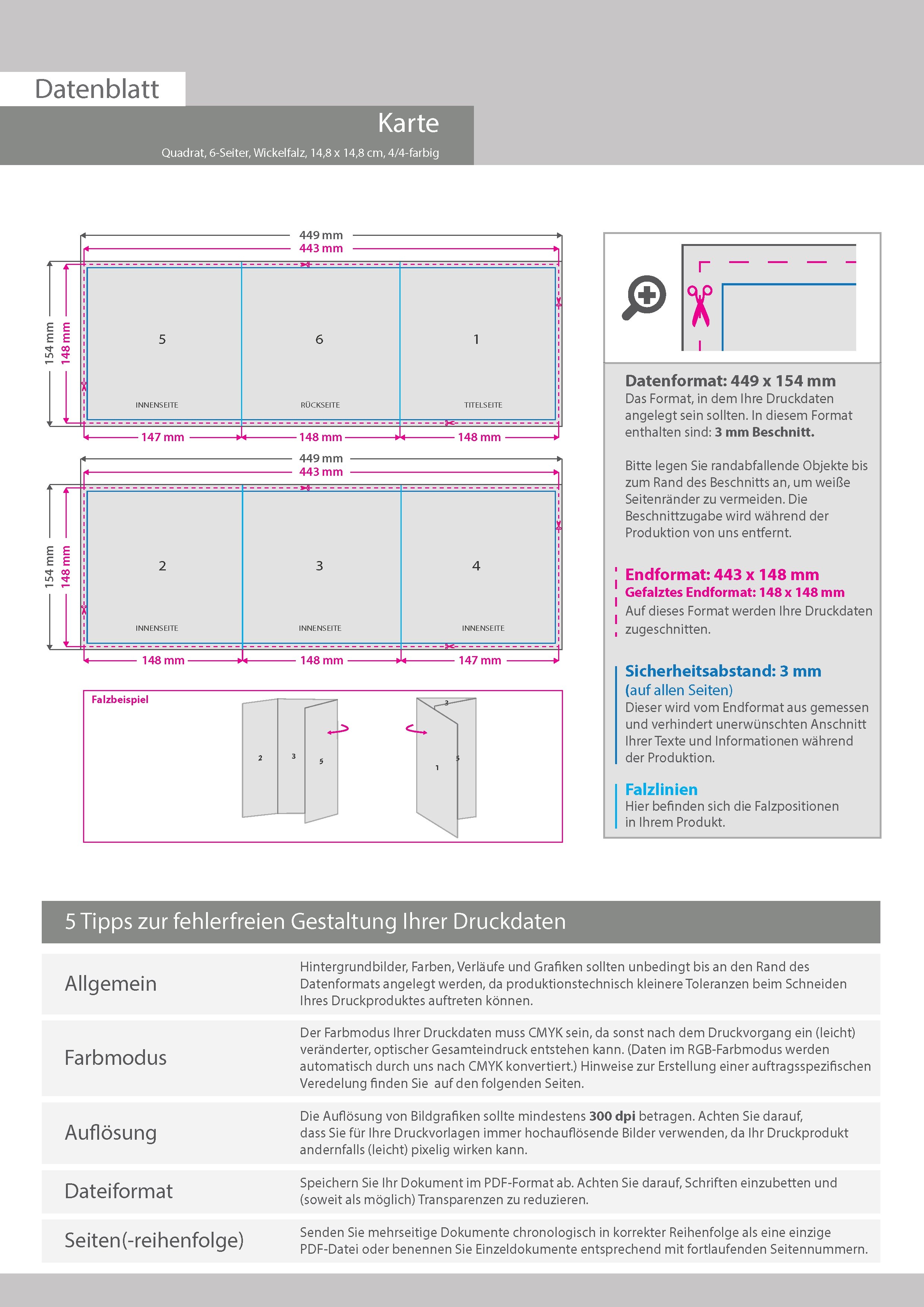 Geburtstagskarte, gefalzt auf Quadrat 14,8 cm x 14,8 cm, vertikaler Wickelfalz, 6-seitig